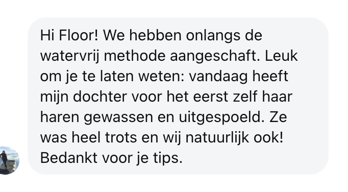 De stappen doe je tijdens badtijd, douchen of zelfs aan de wasbak. Soms 2 minuten, soms 5, meer hoeft niet. Het past dus ook in drukke gezinnen omdat je het gaat integreren tijdens de standaard momenten met water (zoals douchen bijvoorbeeld)