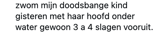...kind niet zijn hoofd onderwater durft te doen en hierdoor vast loopt met zwemles